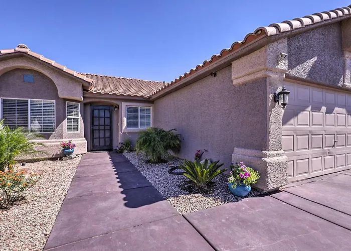 Located 2.2 km from the Pass Eldorado Resort Casino, Henderson Home With Pool And Mountain, Strip Views! boasts a private pool with a hot tub. Featuring a patio, this 2-bedroom welcoming holiday home is situated about 10 minutes' drive from Burkholder Park.